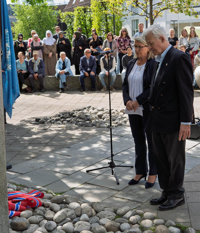 Det var Sandvika Rotary som for over femti år siden fikk satt opp Tronstad-minnesmerket, utført av billedhoggeren Fritz Røed. Iris Frøybu talte på vegne av Rotary-klubbene i Bærum. Hun framhevet betydningen av internasjonalt samarbeid, ikke minst i FN, EU og Nato for å bevare freden i Europa etter krigen. Men også frivillig innsats er viktig - Rotary og andre frivillige organisasjoner i Bærum hjelper nå Ukraina i kampen mot russisk okkupasjon. (Teksten til Iris' tale følger nederst her.)