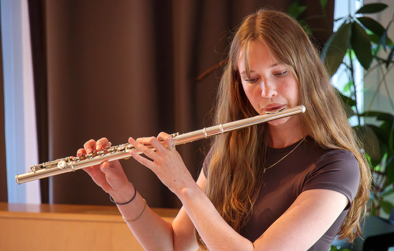 Rotary-utvekslingselev Asha Casey fra Australia, som snart flytter inn hos KRK-medlem Iris, stod for et kunstnerisk innslag på klassisk fløyte.